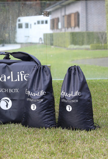 Our EquaLife® Small lunch boxes are a size down, can fit 3 -5 made-up feeds in them or pack single serves or just put your chaff for the weekend. Then when it’s empty they make a great bag for wet and dirty gear!